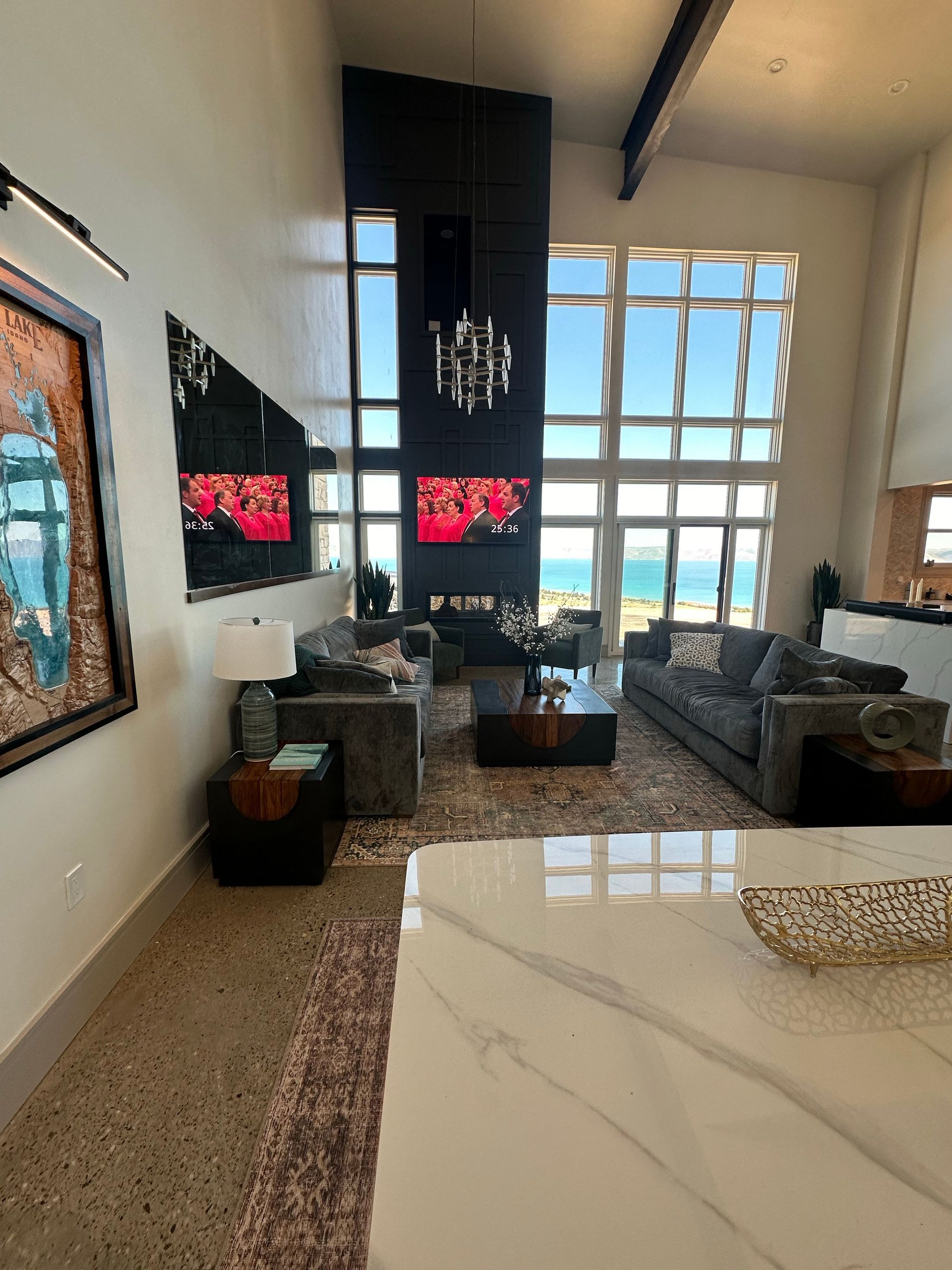 - Views of the lake and mountains through every window